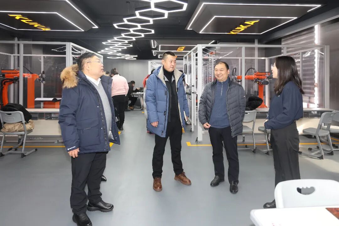座谈会前,谷建光一行参观了我校的沈工-南方测绘北斗时空信息产业学院、智能制造产业学院、华为-沈工现代产业学院、学前教育现代产业学院、浪潮工业互联网学院联合创新中心、沈工-美的数字灯塔学院、沈工-西门子学院、库卡授权工业机器人学院。